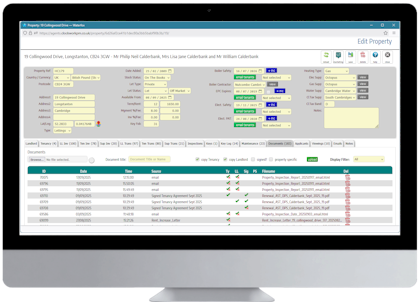 Our comprehensive property screen collates everything property related in one easy to read panel.